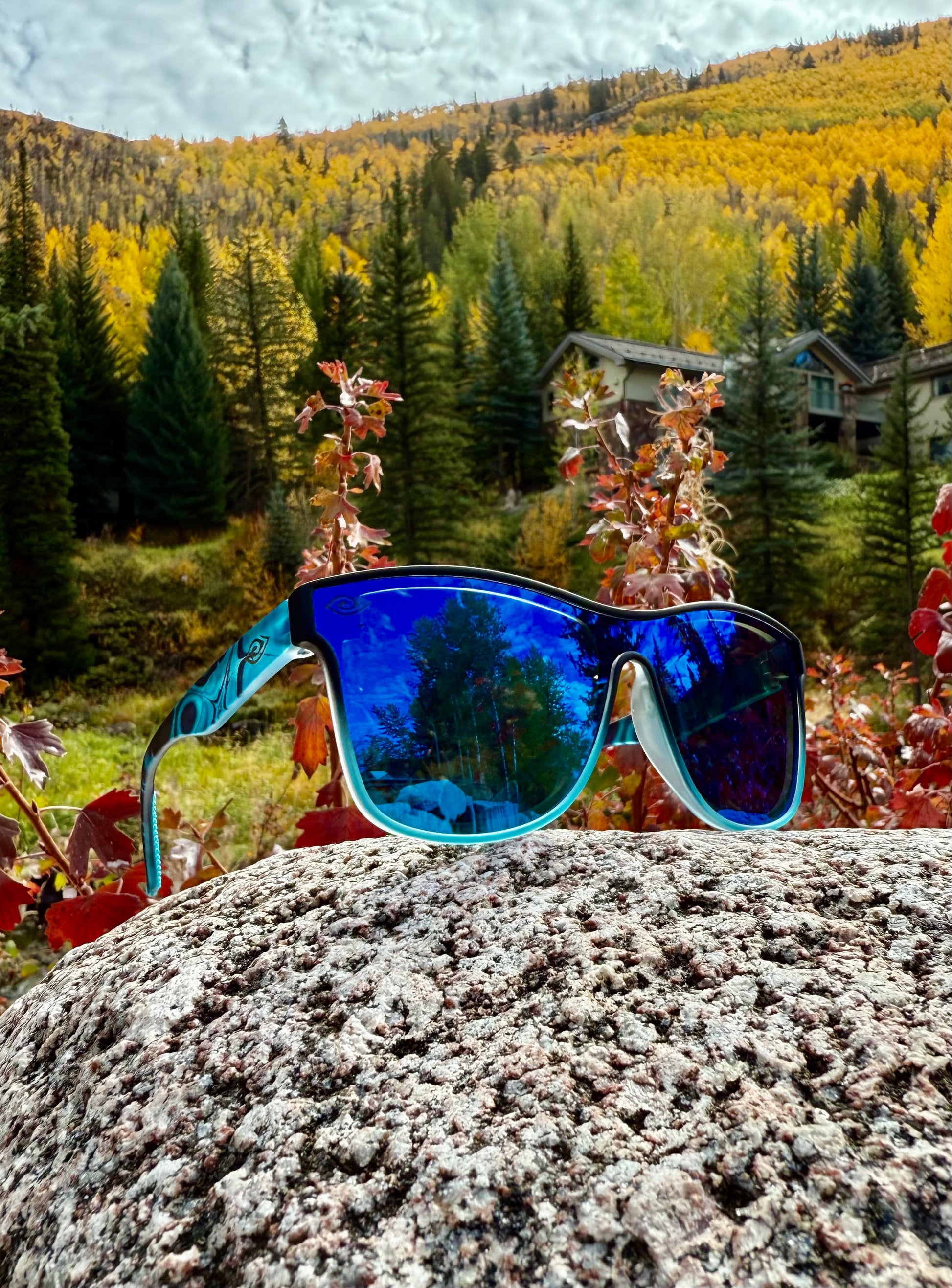 โœ”๏ธ Black & Aqua Marble Frame + Aqua Reflective Lenses