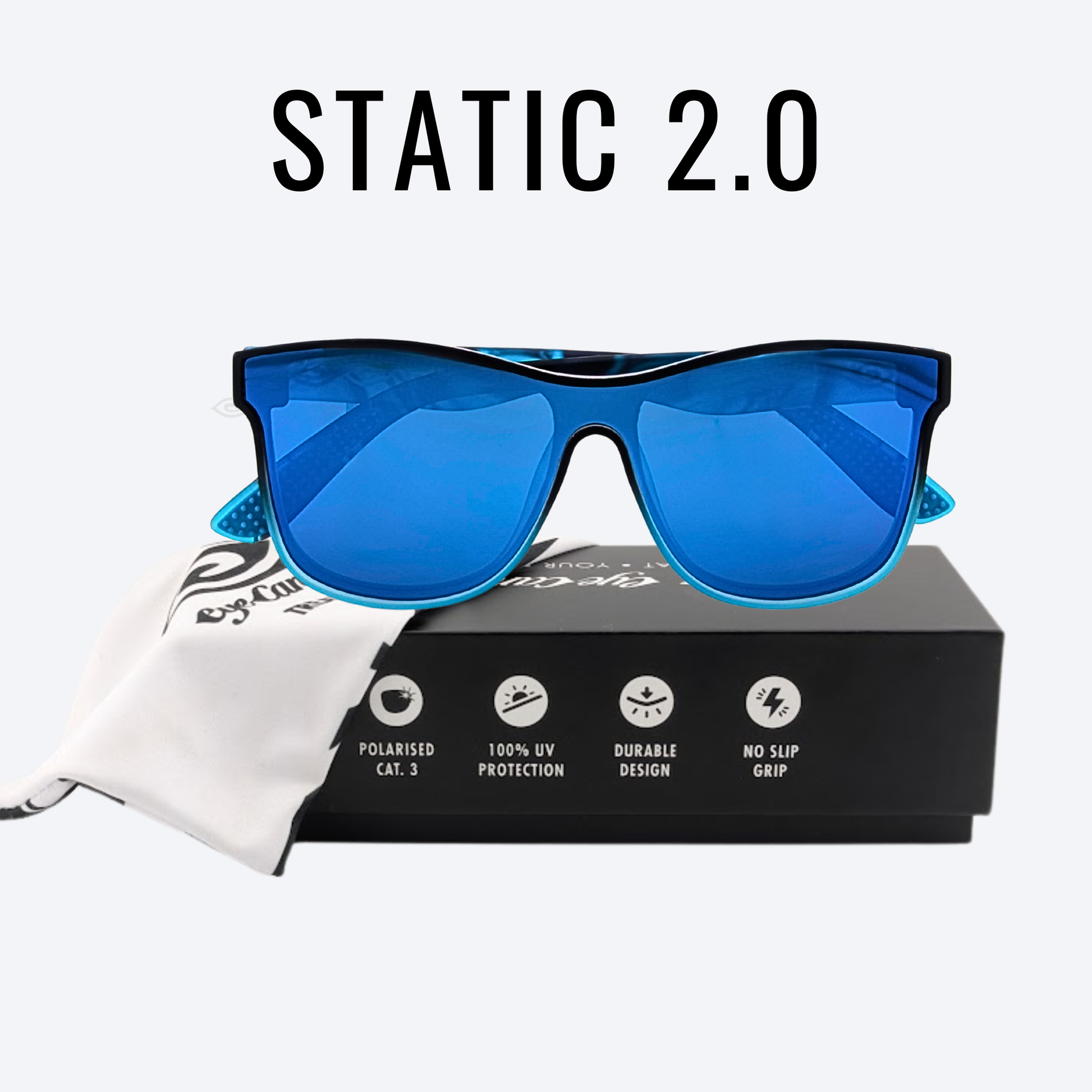 Aqua Volt brings a high-voltage blend of black and electric blue marbled frames with cool aqua-mirrored lenses that spark attention from every angle. Whether you're shredding the streets or catching rays at the beach, this pair delivers serious edge with all-day comfort.