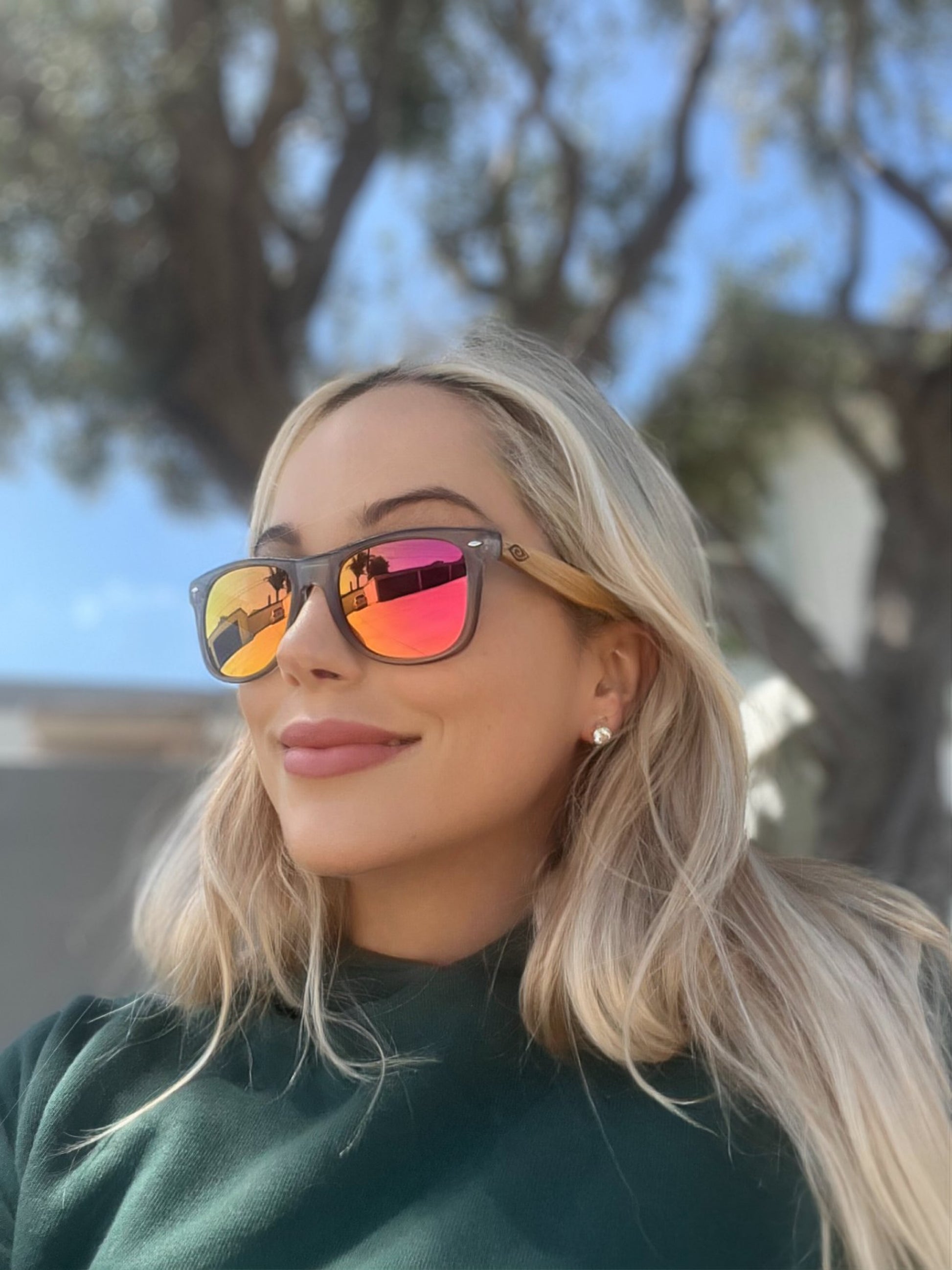 HANDCRAFTED & ECO-FRIENDLY! - Made from real Dark Bamboo, Rose Gold Lenses, and Smoke Grey frames, the Midnight Rose are a Cousin to the Blue and Silver Thunder!